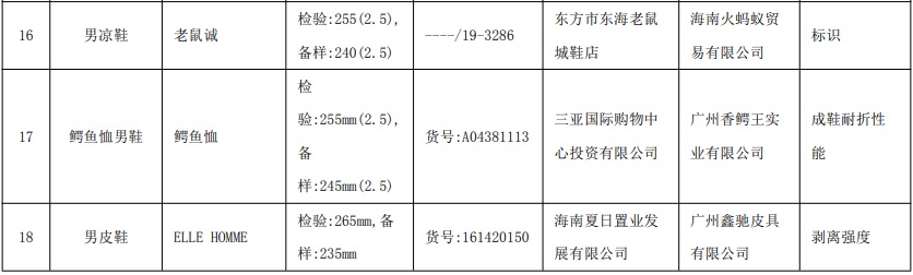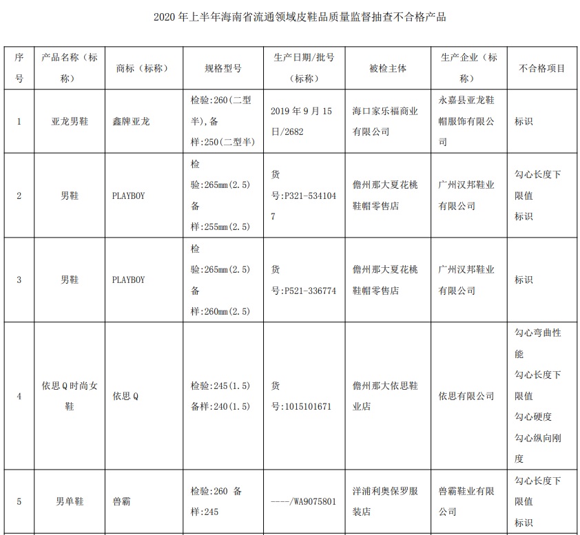 2020年7月17日,海南省市场监督管理局网站公布2020年上半年海南省流通领域皮鞋产品质量监督抽查结果。本次抽查了30批次产品,经检验,不合格18批次。