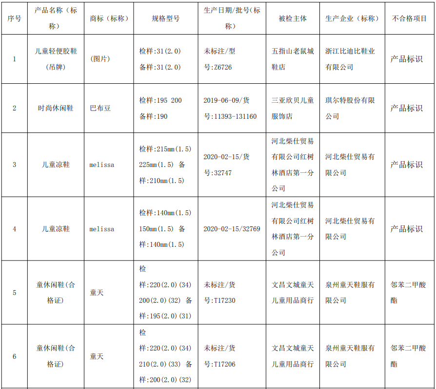 海南省市场监督管理局抽查30批次童鞋产品 不合格8批次