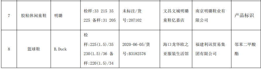 2020 年下半年海南省流通市场童鞋产品质量监督抽查不合格产品