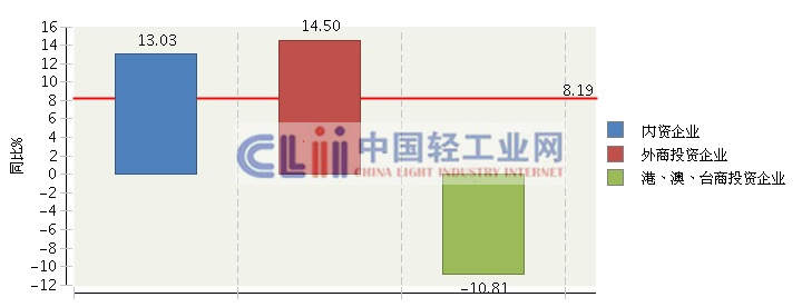 图2.5 2013年1~7月全国日化行业累计主营业务收入企业注册类型同比增长情况