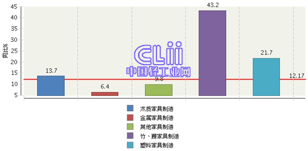 图5 2013年1~7月家具子行业规模以上企业累计主营业务收入增速情况