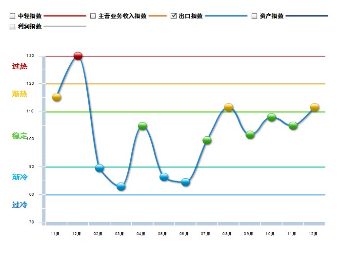 图 2012年11月—2013年12月饮料制品行业出口景气指数变化态势