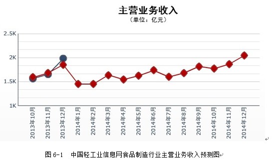 据中国轻工业信息网预测分析系统显示, 2014年全年,食品制造行业主营业务收入将超过2.02万亿元,预计达到12.52%的增长速度。