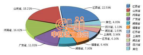 图1 2014年1~2月全国陶瓷行业累计利润总额地区占比情况
