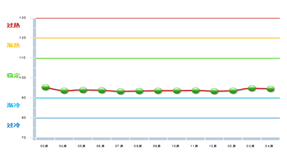 2013年3月至2014年4月,中轻皮革景气指数基本稳定,在90-100间小幅波动,处于稳定提示区的下半区运行。4月中轻皮革景气指数略低于3月(参见图3)。