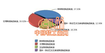 图5 2014年1~5月全国陶瓷行业累计主营业务收入行业小类占比情况