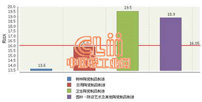 图6 2014年1~5月全国陶瓷行业累计主营业务收入行业小类同比增长情况