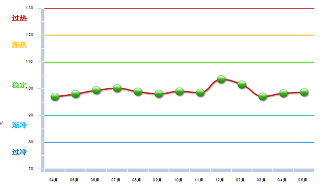 图2 2013.4—2014.5自行车行业景气指数变化态势
