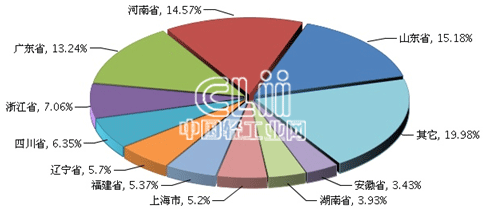 1~4月,家具行业累计利润额居全国前十的地区位次与1~3月相比发生一些变化,山东超越河南成为第一,浙江越过四川排名第四,辽宁、福建、上海、湖南及安徽5个地区的名次不变。其中,山东的累计利润总额(下同)占15.18%,河南占14.57%,广东占13.24%,浙江占7.06%,四川占6.35%,辽宁占5.70%,福建占5.37%,上海占5.20%,湖南占3.93%,安徽占3.43%(图6)。