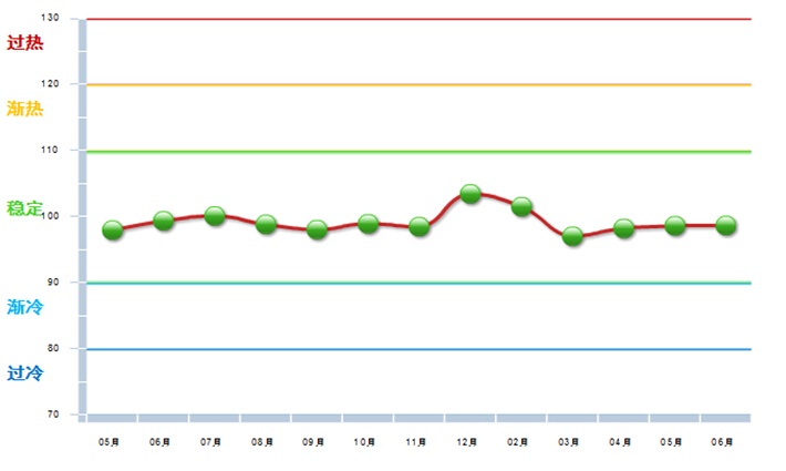 图2 2013.5—2014.6自行车行业景气指数变化态势