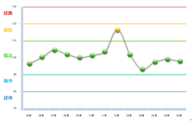 图1 2013.5—2014.6自行车行业利润景气指数变化态势