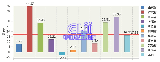 图7 2014年上半年主要地区家具行业规模以上企业累计利润总额增速情况