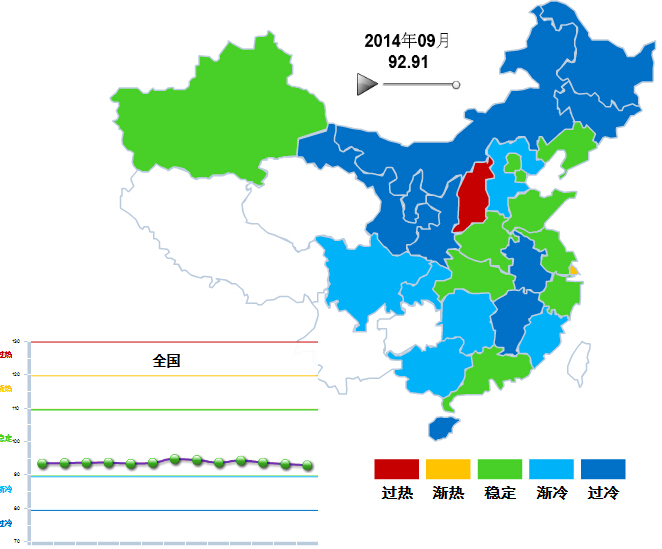 图3 2013.8—2014.9皮革行业景气指数变化态势