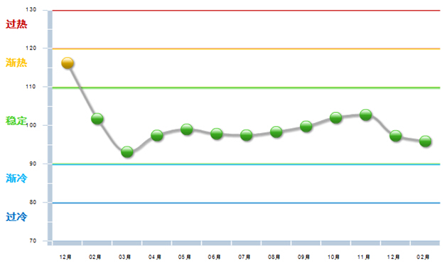 图1 2013.12—2015.2自行车行业利润景气指数变化态势