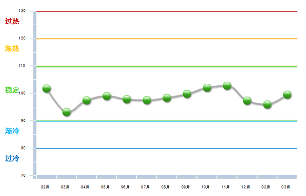 图1 2014. 2—2015.3自行车行业利润景气指数变化态势