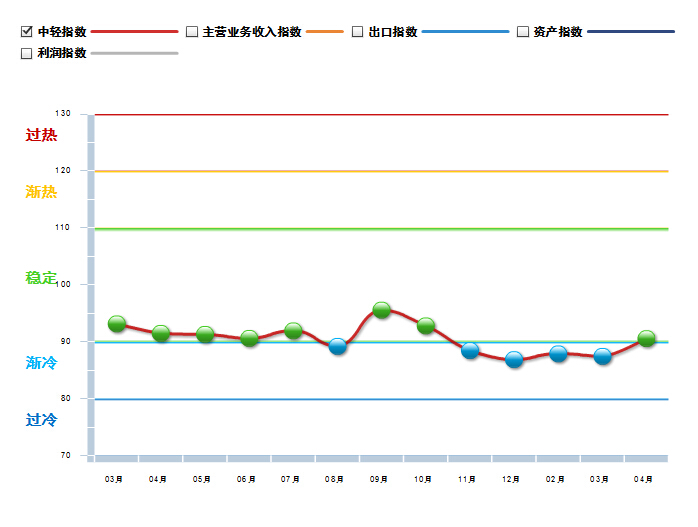 2015年前4个月饮料景气指数呈现震荡回升走势,前三月在渐冷区间运行,指数值均低于90,4月份开始进入稳定区间,出现明显的企稳回升态势。(见图2)