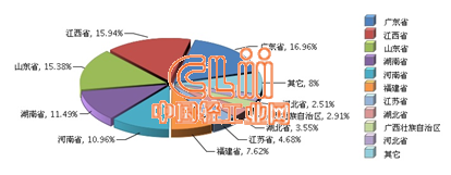 据国家统计局数据显示,2015年1~5月全国陶瓷行业规模以上企业累计完成主营业务收入前三位地区是广东、江西、山东,均超过200亿元,其中:广东累计同比增长9.58%,占16.96%;江西累计同比增长9.89%,占15.94%;山东累计同比下降2.21%,占15.38%,见图1。