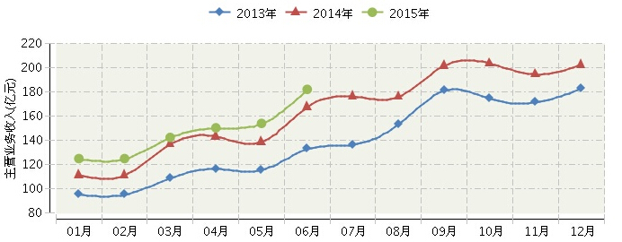 2015年上半年中轻玩具累计主营业务收入逐月攀升