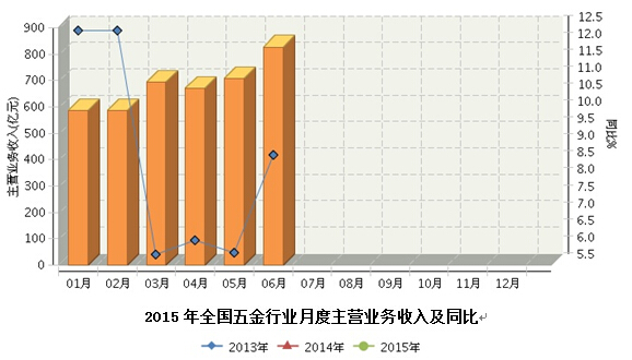 2015年6月我国五金行业主营业务收入及增速环比双双提升