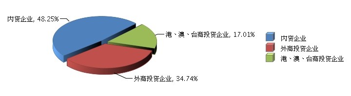 各注册类型企业本季度完成利润具体数据为:内资企业完成累计利润总额占48.25%,同比增长13.25%;外商投资企业完成累计利润总额占34.74%,同比增长-12.1%;港、澳、台商投资企业完成累计利润总额占17.01%,同比增长-21.73%。