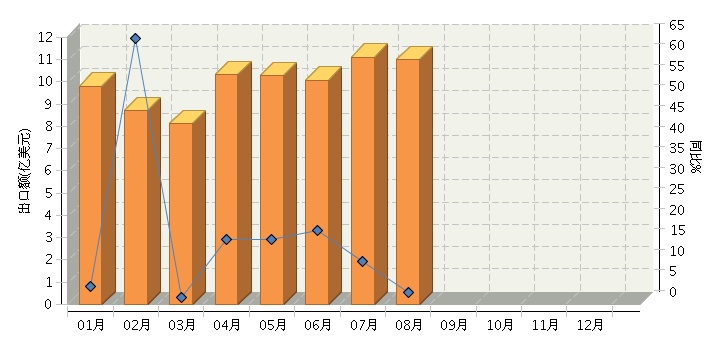 根据海关总署公布数据, 2015年1~8月,全国电池行业累计完成出口额同比增长13.79%。其中: 8月份完成出口额同比增长2.87%。2015年全国电池行业月度出口额及同比如下图所示。