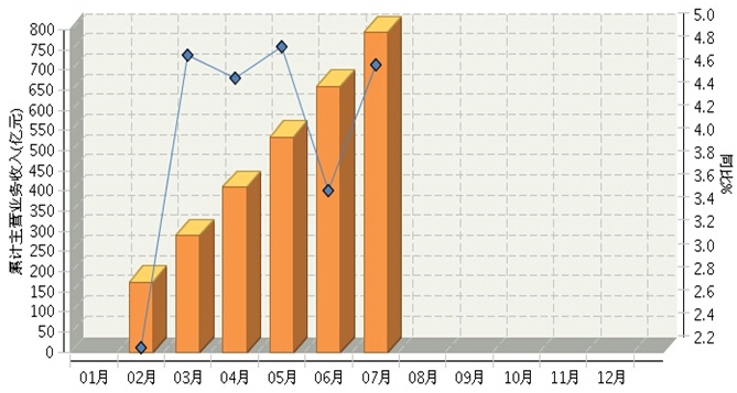 图1 2014.6—2015.7自行车行业主营业务收入景气指数变化态势 二、主营业务收入完成情况 2015年1月~7月,全国自行车制造行业累计完成主营业务收入793.86亿元,同比增长4.7%。今年以来,行业主营业务收入增速明显低于去年同期水平。(参见图2) 图2 2015年全国自行车行业累计主营业务收入及同比 2015年1-7月份全国自行车行业下辖的两个子行业完成主营业务收入的状况是:脚踏自行车及残疾人座车制造行业累计完成主营业务收入357.1亿元,同比增长5.56%;助动自行车制造行业累计完成主营业务收入436.76亿元,同比增长4.01%。 二、主营业务收入分地区完成情况 2015年1月~7月,全国自行车制造行业完成累计主营业务收入793.86亿元,同比增长4.70%。主要集中在江苏省、天津市、浙江省、河南省、山东省等地区,这5省市的比重占全国的73.34%(参见图3)。从增长情况来看,河南省增速最高,达到31.45%。 图3 2015年1~7月全国自行车行业累计主营业务收入地区占比情况