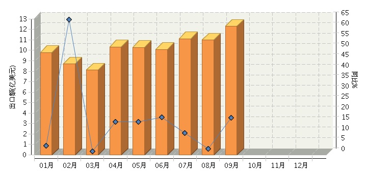 根据海关总署公布数据, 2015年1~9月,全国电池行业累计完成出口额同比增长14.30%。其中:9月份完成出口额同比增长17.83%。2015年全国电池行业月度出口额及同比如下图所示。