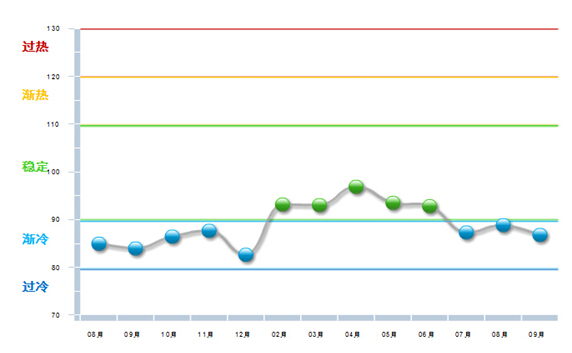 2015年三季度,玩具行业利润指数下滑明显,7、8、9三个月份都降至渐冷区间,上半年的稳定状态不再持续。(参见图1)
