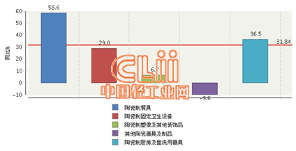 图2 2015年1~9月全国陶瓷制品累计出口额商品结构同比增长情况