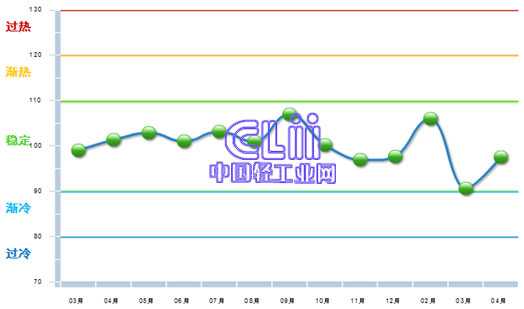 图1 2014年3月~2015年4月家具行业出口景气指数变化态势