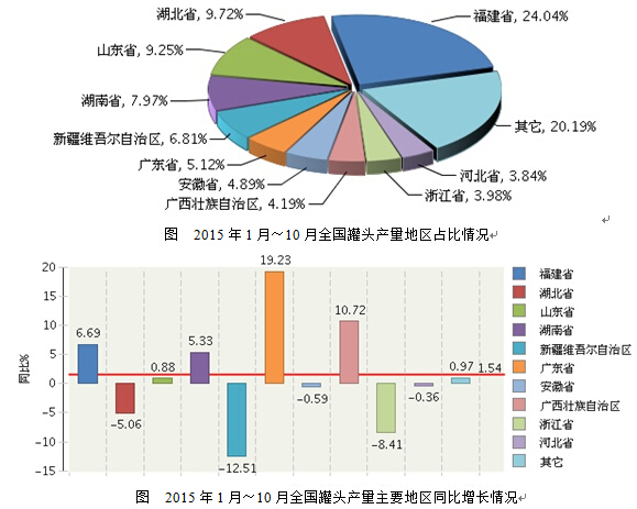 - 2015年1~10月全国累计生产罐头同比2016/1/7 10:54:19