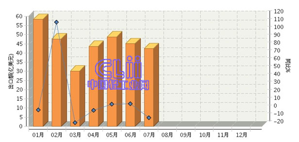 图2 2015年1~7月家具行业月度出口值及增速