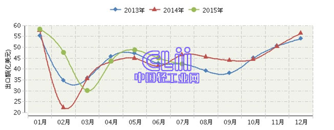 图3 家具行业近三年月度出口值对比