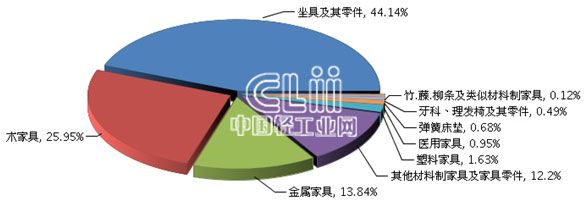 图4 2015年1~7月家具行业主要商品累计出口值占比情况