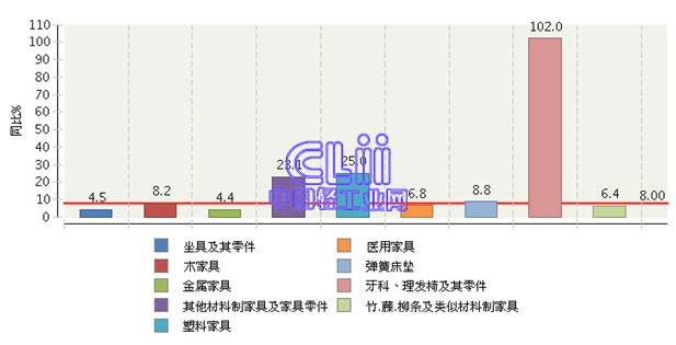 图5 2015年1~7月家具行业主要商品累计出口值增速情况