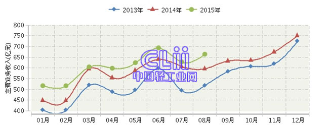2015年1~8月家具行业主营业务收入分析