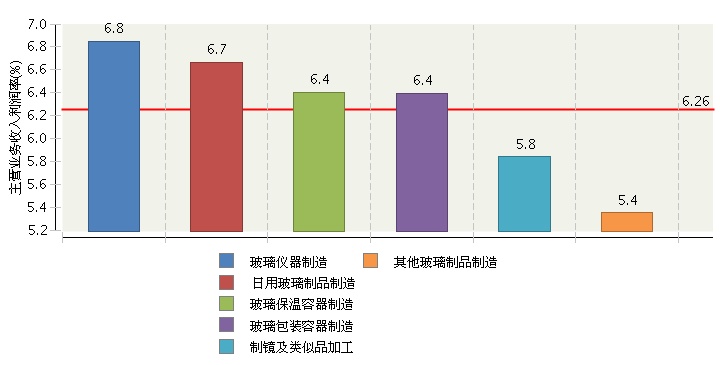 2015年1月~12月,全国玻璃制品制造行业累计完成主营业务收入2,314.33亿元,同比增长4.98%;累计完成利润总额144.79亿元,同比增长-0.13%;累计主营业务收入利润率为6.26%,同比增长-0.32%。