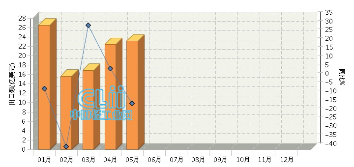 2016年1~5月,全国灯具及照明装置行业累计完成出口额104.60亿美元,同比增长-8.38%。其中:5月份完成出口额23.13亿美元,同比增长-13.59%。