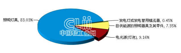 2016年1月~6月,全国照明行业对日本完成累计出口额4.88亿美元,同比增长-8.65%。其中,照明灯具完成累计出口额4.05亿美元(占83.03%),同比增长-7.16%;电光源(灯泡)完成累计出口额0.45亿美元(占9.16%),同比增长-26.4%;自供能源的照明器具及其零件完成累计出口额0.36亿美元(占7.35%),同比增长5.99%;放电灯或放电管用镇流器完成累计出口额0.02亿美元(占0.45%),同比增长-30.42%。