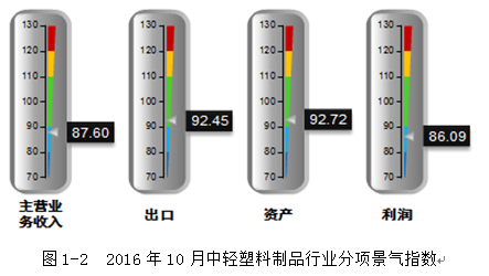 中国轻工业经济运行及预测预警系统监测显示:2016年10月份中轻塑料景气指数为88.35,比上月回落0.55点。