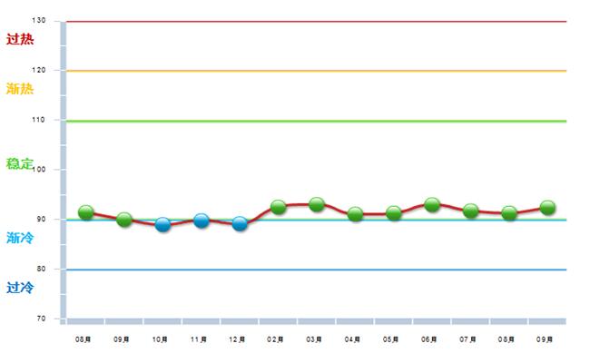 图2 2015.8—2016.9自行车行业景气指数变化态势