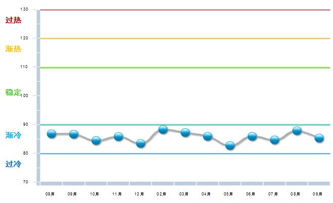 近一年多以来,自行车行业利润景气指数一直处于渐冷区间。进入2016年后,利润指数虽然略有上升,但依然位于渐冷区间,3月份以来逐渐走低,8月份短暂上扬后回落。(见图1)