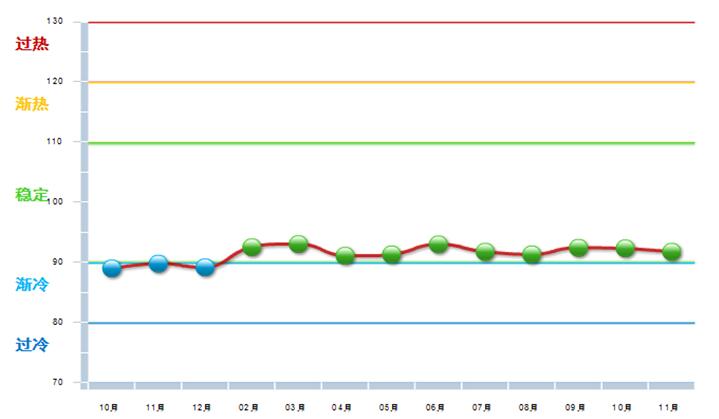 图2 2016.10—2016.11自行车行业景气指数变化态势