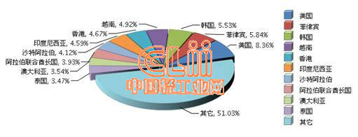图3 2017年1~3月全国陶瓷砖累计出口额贸易国占比情况