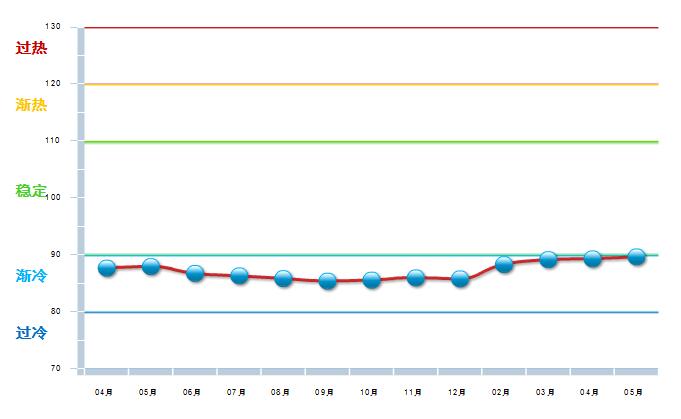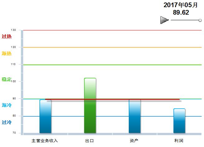 2016年4月至2017年5月,中轻皮革景气指数基本稳定,在90附近小幅波动,处于渐冷提示区运行(参见图3)。