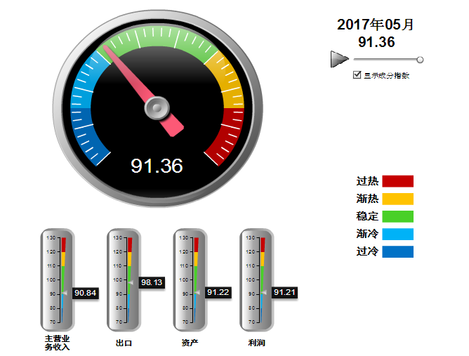 图1 2017.5月工艺美术行业景气指数分指标显示状况