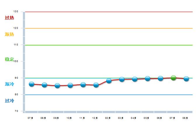 2016年7月至2017年8月,中轻皮革景气指数基本稳定,在90附近小幅波动,处于渐冷提示区运行(参见图3)。
