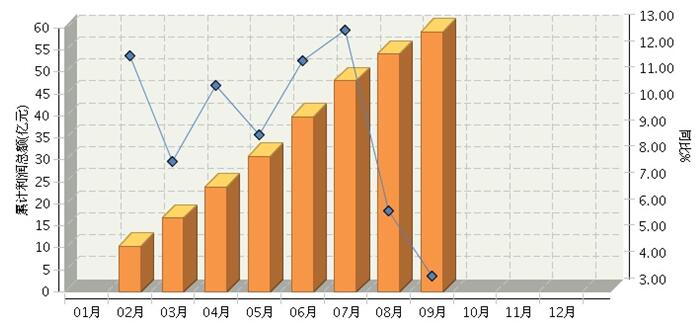 2017年1月~9月,全国自行车制造行业累计完成利润总额59.12亿元,同比增长3.59%。比上月累计增速再度下降了2.49个百分点。(参见图2)。