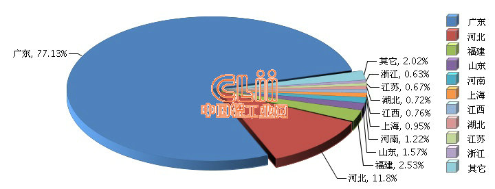 据海关数据显示,2017年1~9月,全国陶瓷制固定卫生设备累计出口额同比增长50.84%,其中广东出口额占比近八成,同比大幅增长,累计出口额23.49亿美元(占77.13%),同比增长75.99%。次王江苏出口增速也较大,累计出口额0.2亿美元(占0.67%),同比增长64.44%。