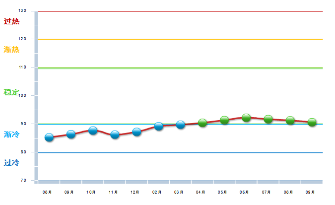 图2 2016.8----2017.9月工艺美术行业景气指数变化态势